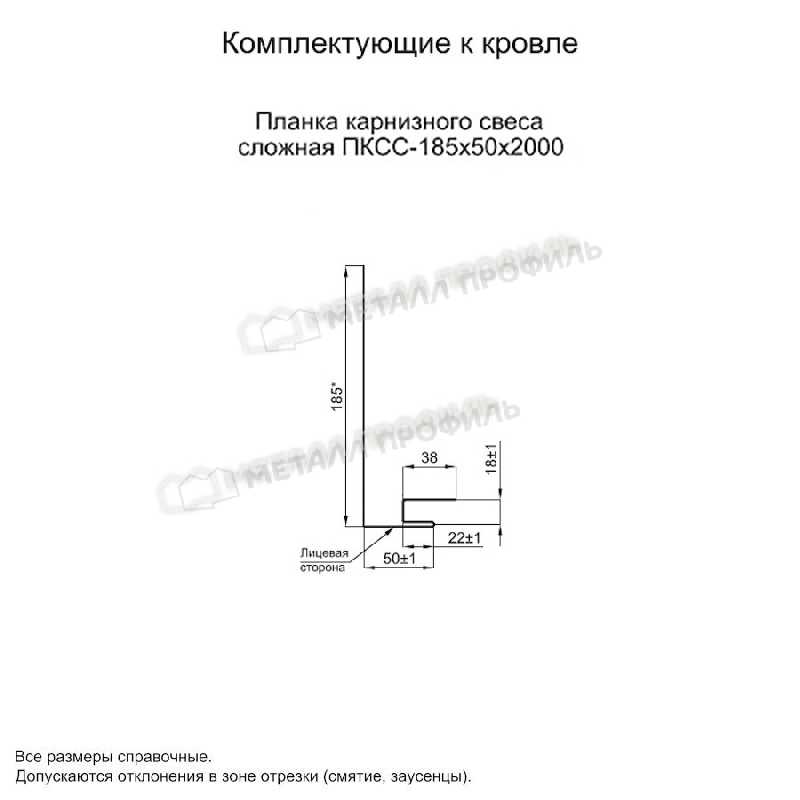 Планка карнизного свеса сложная 185х50х2000 (ПЭ-01-9003-0.45)