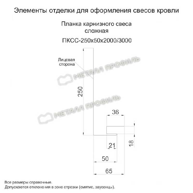 Планка карнизного свеса сложная 250х50х3000 (ПЭ-01-3005-0.45)