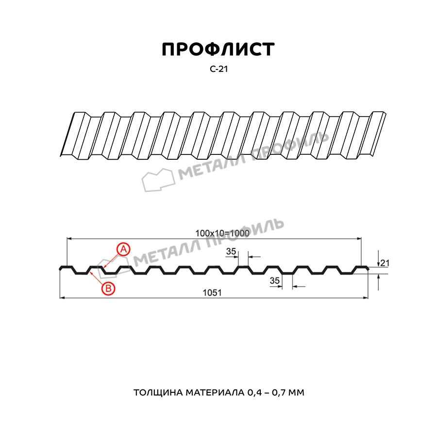 Профиль С-21 обладает высокой прочностью и устойчивостью к воздействию различных погодных условий, что делает его идеальным выбором для кровли и фасадов зданий.