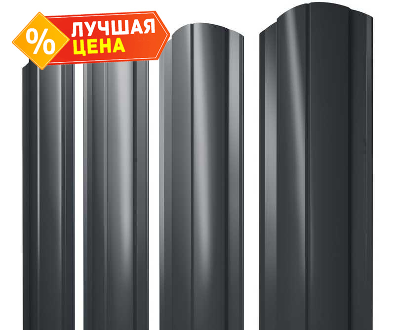 Штакетник Круглый фигурный Grand Line 0,5 GreenCoat Pural BT, matt RAL7016 Антрацитово-Серый