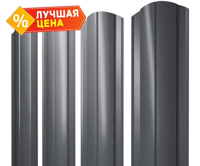 Штакетник Круглый фигурный Grand Line 0,5 GreenCoat Pural BT RR 23 Темно-Серый, Мокрый Асфальт