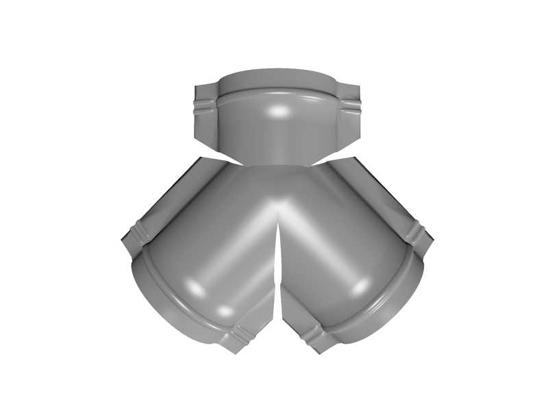 Тройник Y малого конька полукруглого используется для соединения трех полукруглых коньков в одной точке.