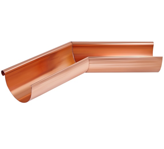 Одним из главных преимуществ внутреннего угла желоба из меди является его долговечность. Медь не подвержена коррозии и может служить десятилетиями без необходимости замены. Кроме того, медь обладает эстетической привлекательностью, со временем приобретая благородный патинированный вид, что делает её идеальным выбором для тех, кто ценит внешний вид своего дома. Угол в 135 градусов обеспечивает плавный и эффективный отвод воды, что снижает риск повреждения водосточной системы и фасада здания. Диаметр 125 мм гарантирует высокую пропускную способность, что особенно важно в регионах с обильными осадками.