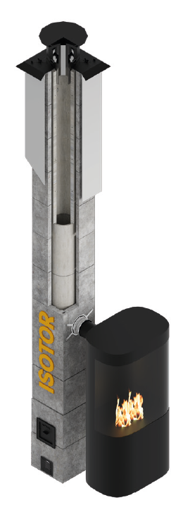 Модульный комплект дымохода ISOTOR, 0,33м., с дефлектором, без вентканала, диаметр 20 см, Schiedel