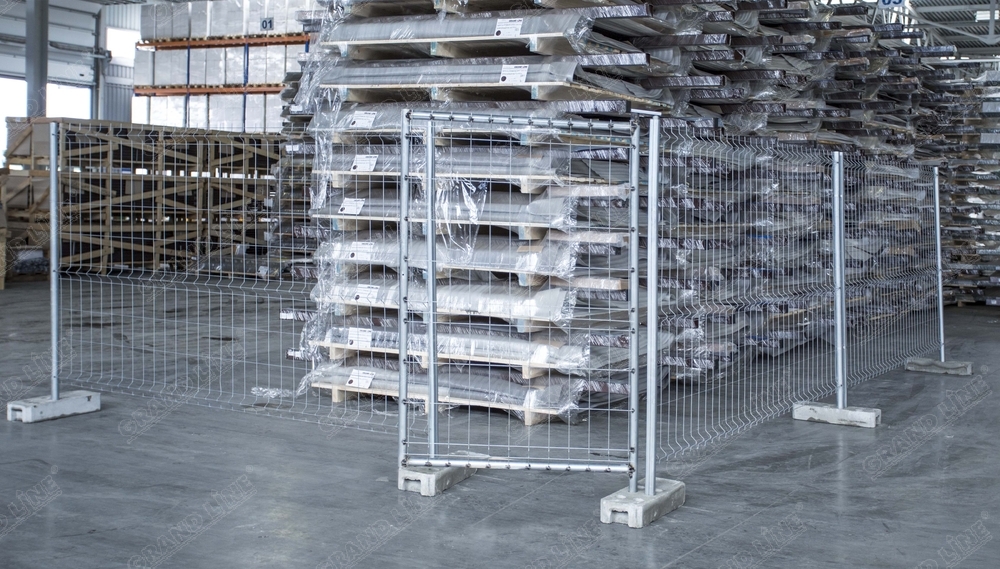 Крепление временных ограждений используется для скрепления столбов установленных в одно бетонное основание.