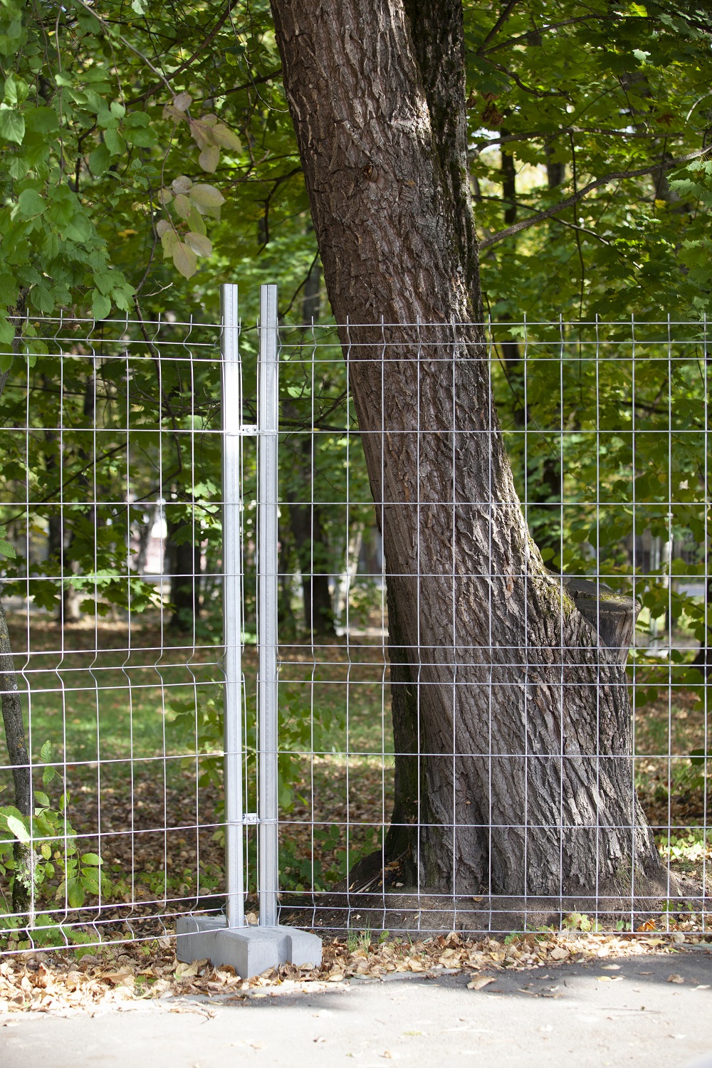 Основание бетонное обеспечивает высокую устойчивость конструкции временного ограждения.